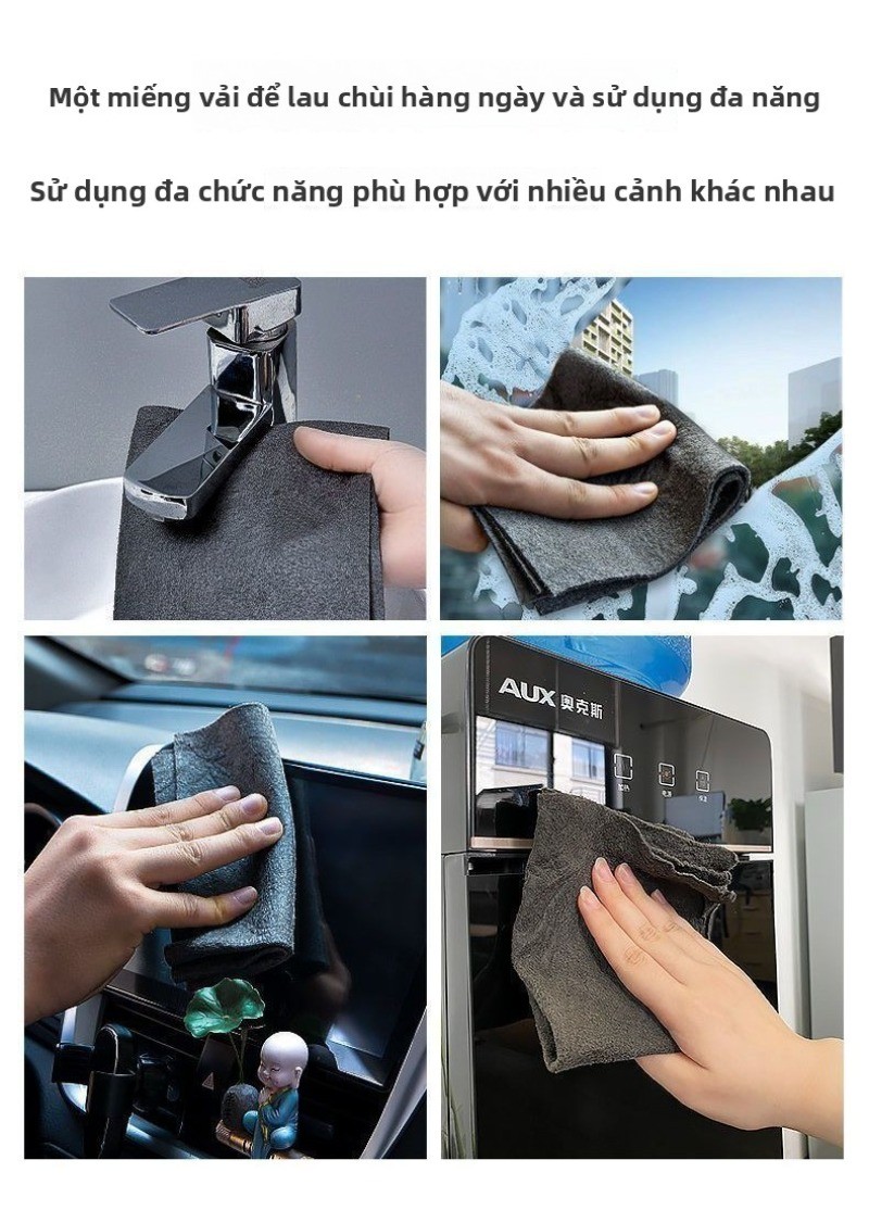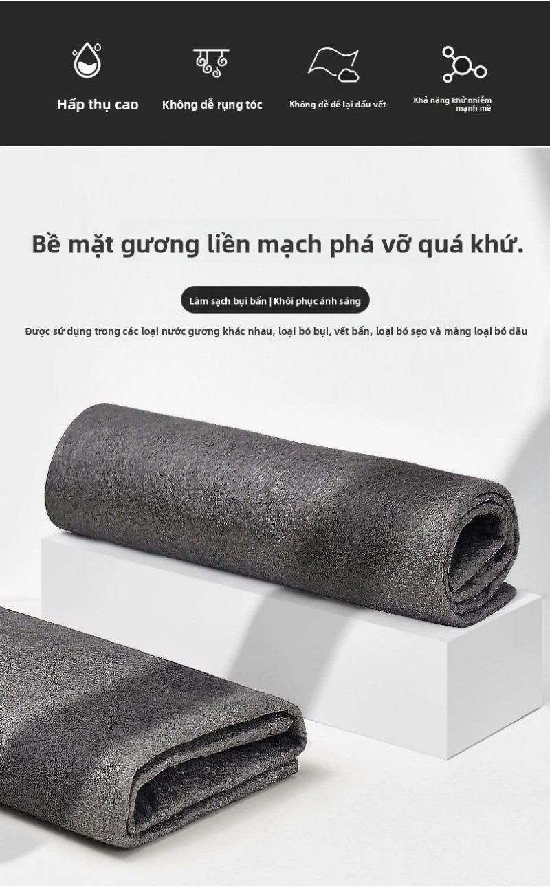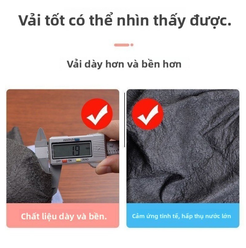 Được làm từ chất liệu micro siêu thấm hút Với khả năng thấm hút nước gấp 20 lần trọng lượng của khăn. Những vết bẩn nhỏ nhất đều bị hút vào làm cho bề mặt sáng bóng và không để lại vệt nước nào.